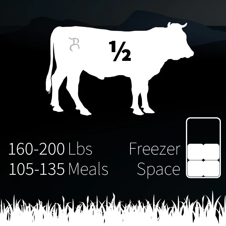 1/2 Cow Share provides you with premium steaks, roasts, assorted cuts and ground from a side of beef.